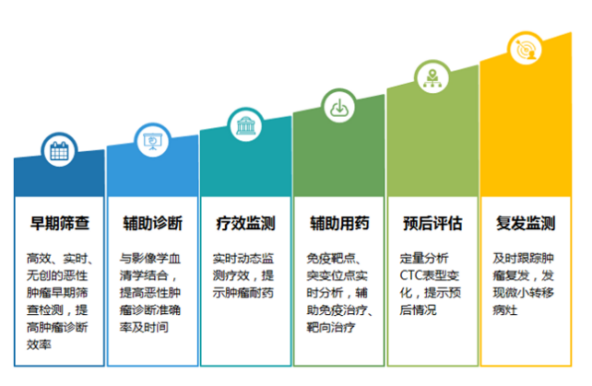 上皮型 CTC/CTM 鉴定(CKpan+、CD45-、DAPI+):辅助肿瘤早期诊断,CTM 数量可提示转移风险;